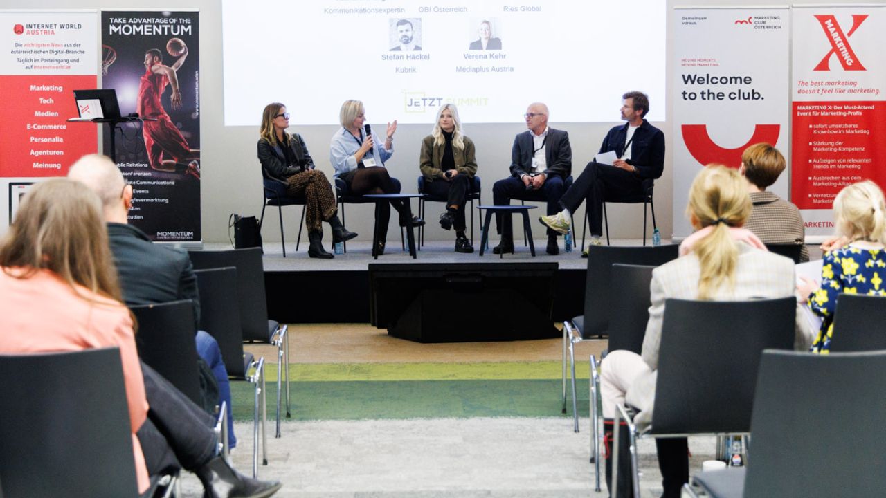 Mit Performance Marketing, Branding und Markenkern standen zum Abschluss des JETZT SUMMT 2026 noch einmal drei Marketing-Leuchttürme im Mittelpunkt. „Erodieren wir gerade die Markenkerne durch zu viel Performance Marketing und zu wenig Branding?“, fragte Moderator Stefan Häckel, Gründer und CEO der Strategie- & Kreativagentur Kubrik, seine Runde und forderte sie zum „Reality Check“ dieser These auf. Unter seiner Leitung diskutierten Kommunikationsexpertin Katharina Luger, Melanie Schomann von der Baumarktkette OBI, Verena Kehr von der Mediaagentur Mediaplus und Marken-Experte Michael Brandtner (Ries Global).